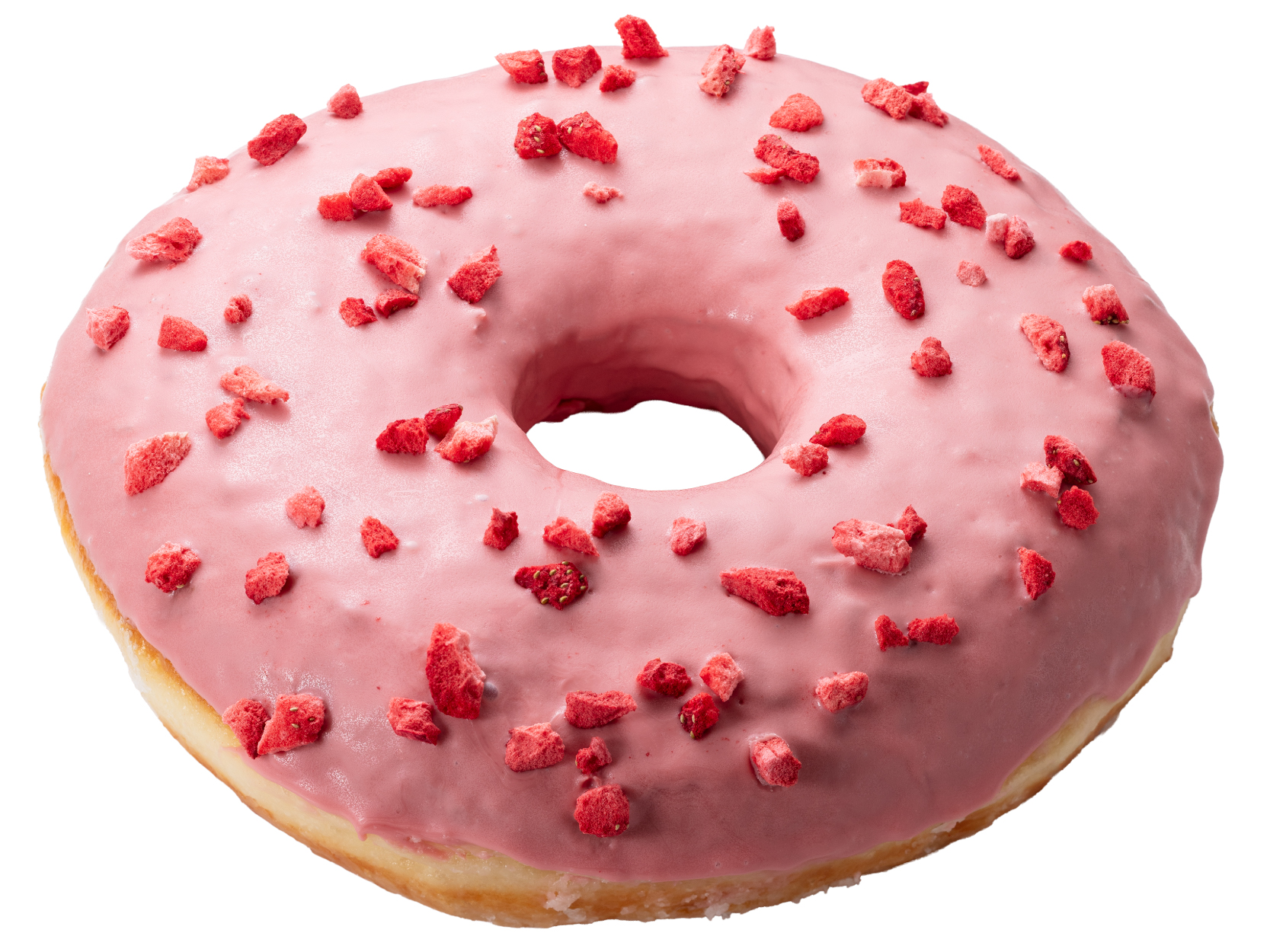 ストロベリーチョコレートテキサスグレイズドは、ランディーズドーナツ商品の中でも最大サイズのテキサスドーナツだ。大きさは直径約16cm、一番人気のグレイズドレイズドの直径約11cmと比較して直径約1.5倍。見た目が華やかな巨大ドーナツで、食べ応えのある一品である。鮮やかな色と豊かな風味のフリーズドライいちごをたっぷりトッピングし、甘酸っぱいいちごの風味とリッチなチョコレートの組み合わせが特徴だ。6月15日までの期間限定で毎日数量限定で販売する。